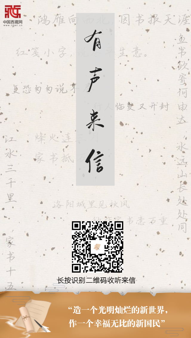 【編者按】穿越歲月長(zhǎng)河,翻開一封封紅色家書,感受筆端下的家國情懷和人間煙火。一紙書信明志向,一紙書信道親情,家書中浸透著硝煙與血汗,澎湃著奮斗與信仰,在中國共產(chǎn)黨成立100周年之際,中國西藏網(wǎng)推出融媒體產(chǎn)品[有聲來信],從紙短情長(zhǎng)中重溫波瀾壯闊的歷史,感悟革命先輩的心路情懷。本期內(nèi)容為:造一個(gè)光明燦爛的新世界,作一個(gè)幸福無比的新國民
