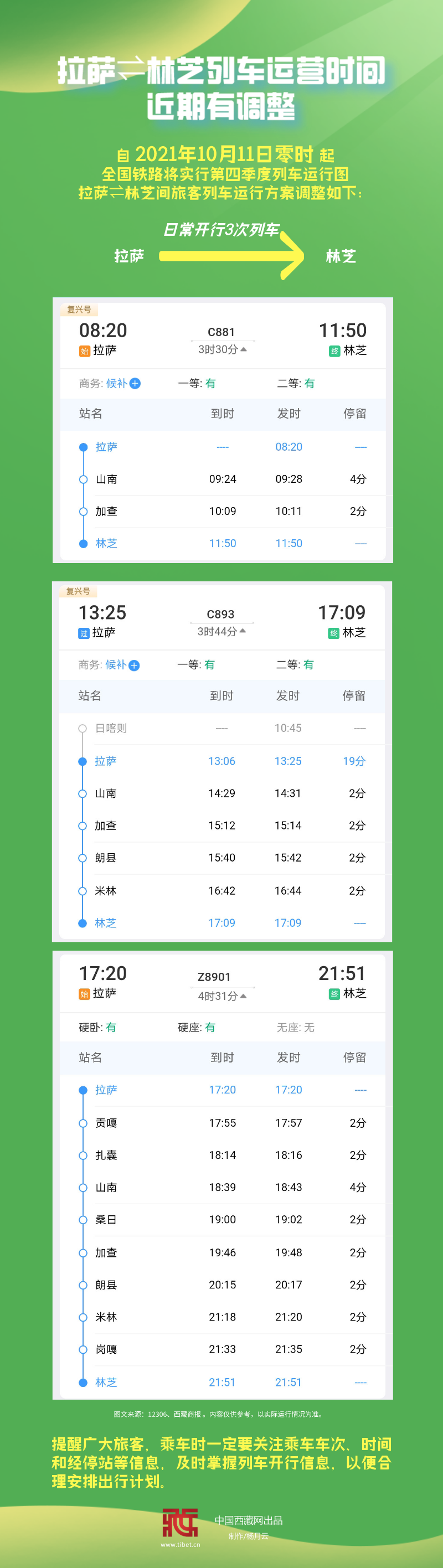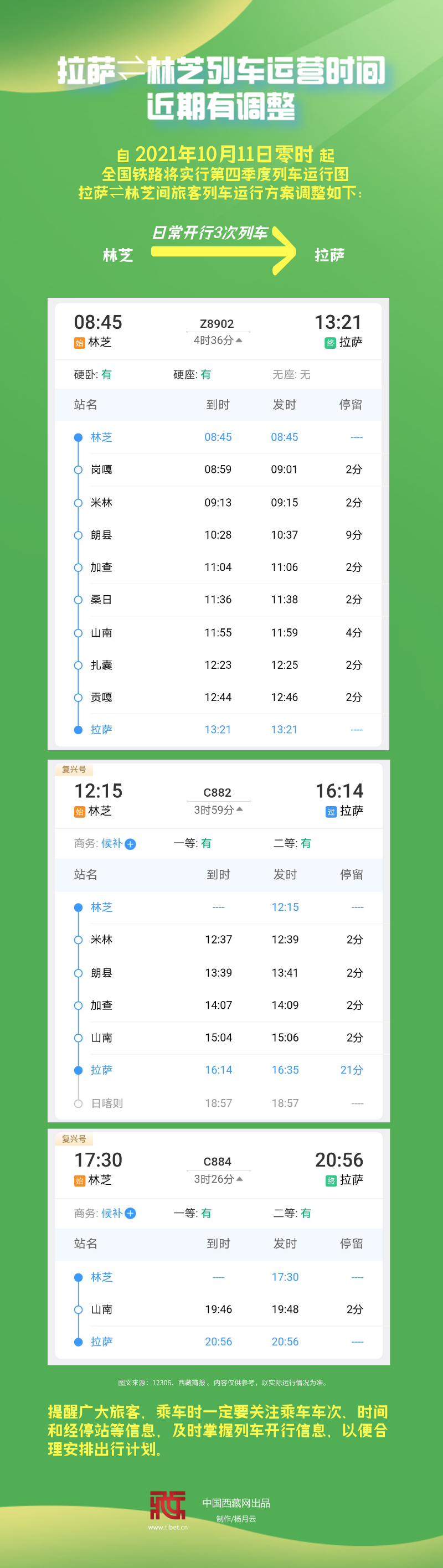 長(zhǎng)圖|拉薩?林芝列車(chē)運(yùn)營(yíng)時(shí)間近期有調(diào)整