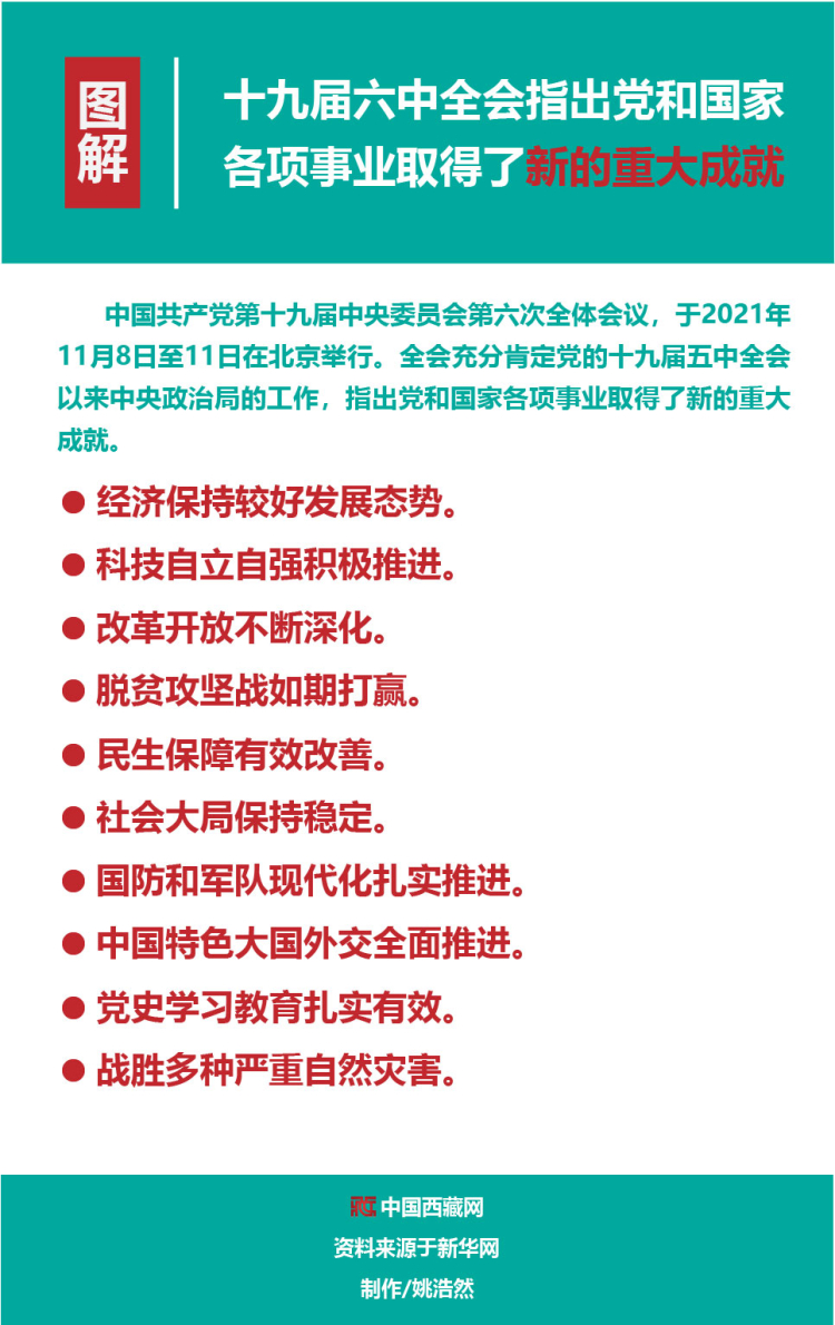 圖解丨十九屆六中全會(huì)指出黨和國(guó)家各項(xiàng)事業(yè)取得了新的重大成就