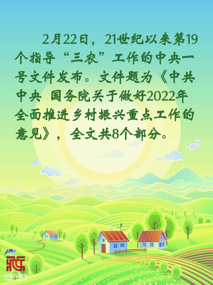 2月22日,21世紀(jì)以來(lái)第19個(gè)指導(dǎo)“三農(nóng)”工作的中央一號(hào)文件發(fā)布。文件題為《中共中央 國(guó)務(wù)院關(guān)于做好2022年全面推進(jìn)鄉(xiāng)村振興重點(diǎn)工作的意見(jiàn)》,全文共8個(gè)部分。[詳細(xì)] -