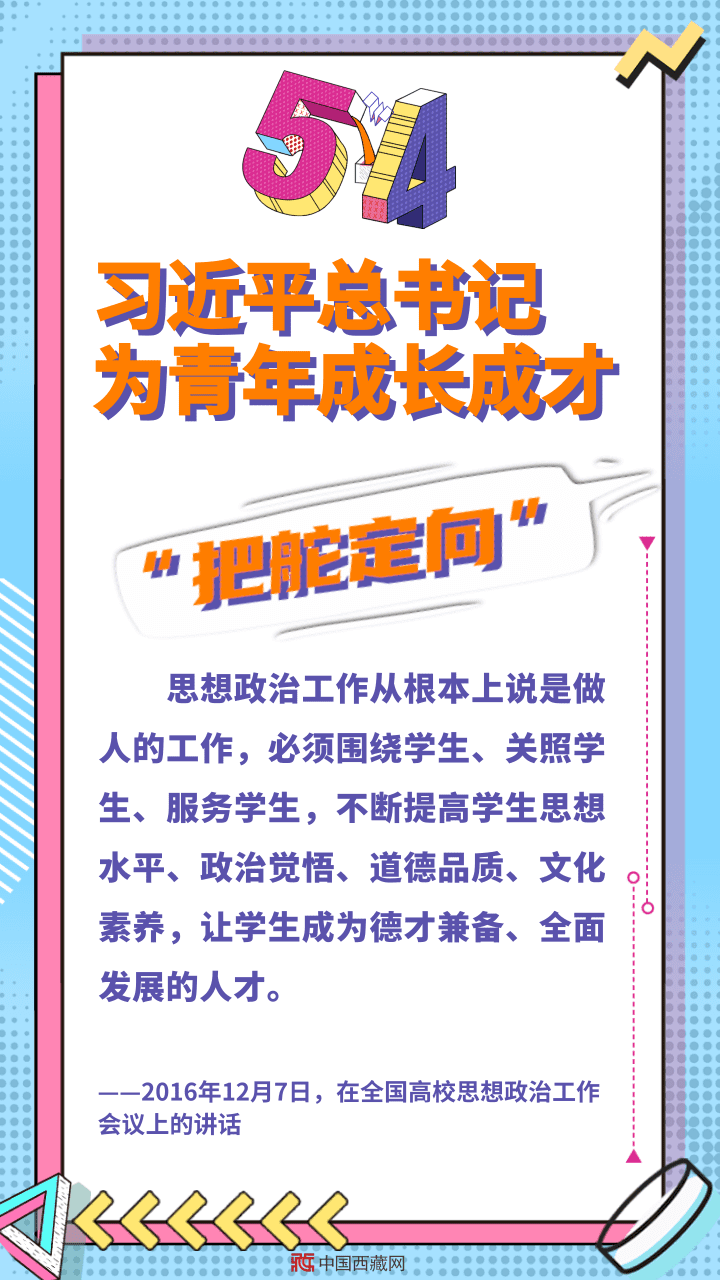 青年是國(guó)家的未來(lái),民族的希望。在革命、建設(shè)、改革各個(gè)歷史時(shí)期,我們黨始終高度重視青年、關(guān)懷青年、信任青年,對(duì)青年一代寄予殷切期望。新時(shí)代,習(xí)近平總書(shū)記圍繞青年工作發(fā)表的一系列重要論述,為廣大青年成長(zhǎng)成才“保駕護(hù)航”。(中國(guó)西藏網(wǎng) 編輯/孫健 制作/周晶)