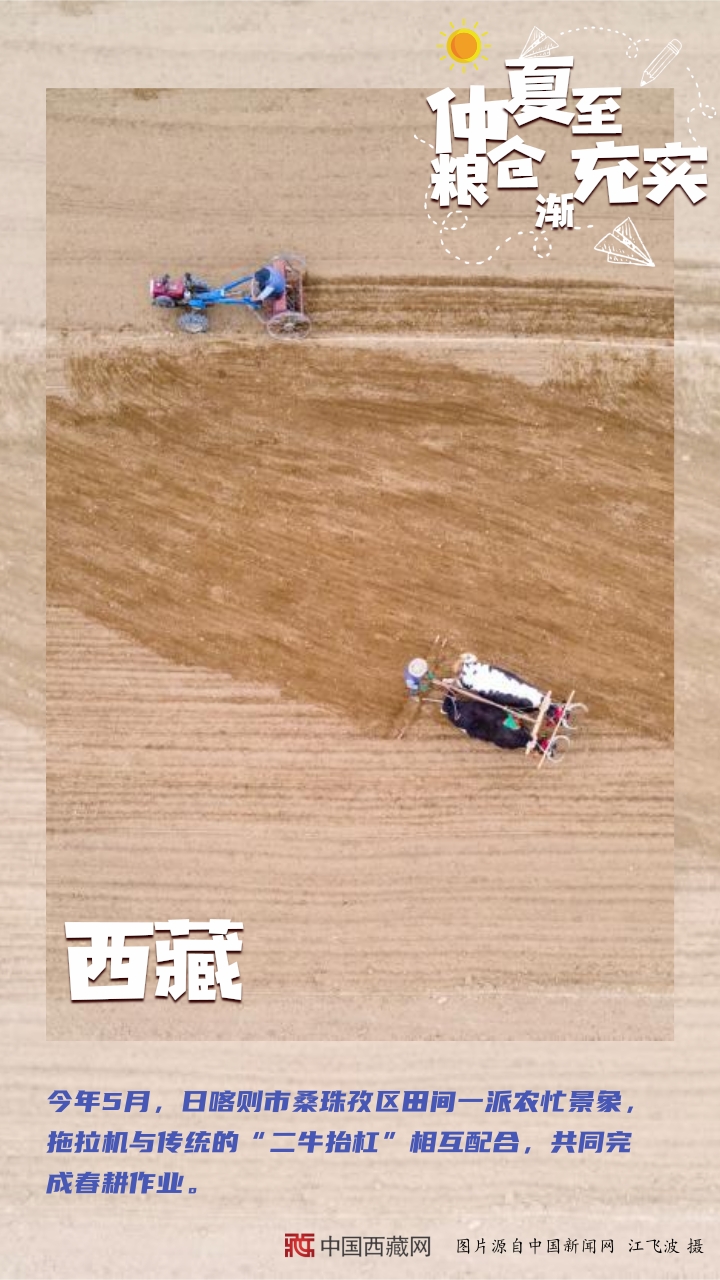 【編者按】“夏糧豐收了,全年經(jīng)濟就托底了。”糧食,一頭連著百姓飯碗,一頭連著國家戰(zhàn)略。幾個月來,從中原糧倉到天涯海角,從東北平原到塞上江南,從魚米之鄉(xiāng)到雪域高原,田間壟上繁忙勞作。如今,仲夏已至,麥浪聲聲。芒種到夏至期間,秋熟作物陸續(xù)從播種、移栽到苗期管理,全面進入“三夏”大忙高潮。農(nóng)民不閑,在田間地頭里搶抓農(nóng)時;土地不荒,在夏收夏種中充實糧倉。(中國西藏網(wǎng) 編輯、制作/李元梅)