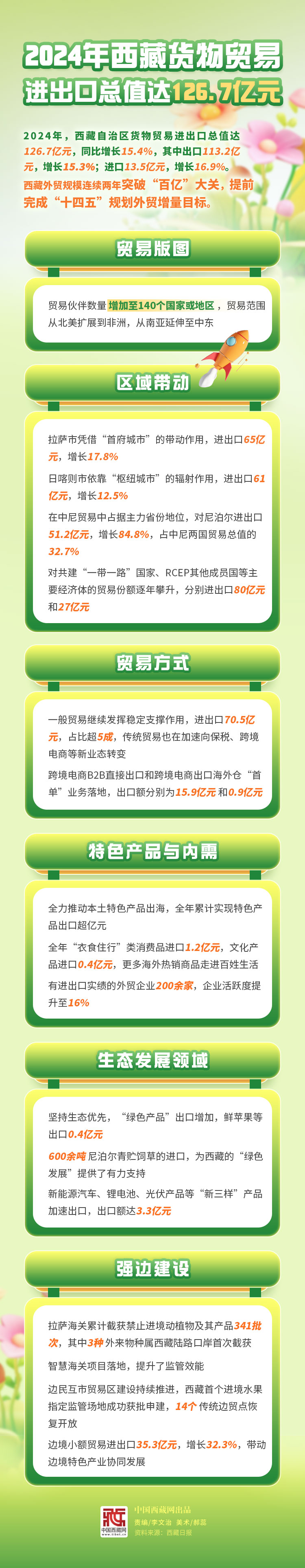 圖解|2024年西藏貨物貿(mào)易進(jìn)出口總值達(dá)126.7億元
