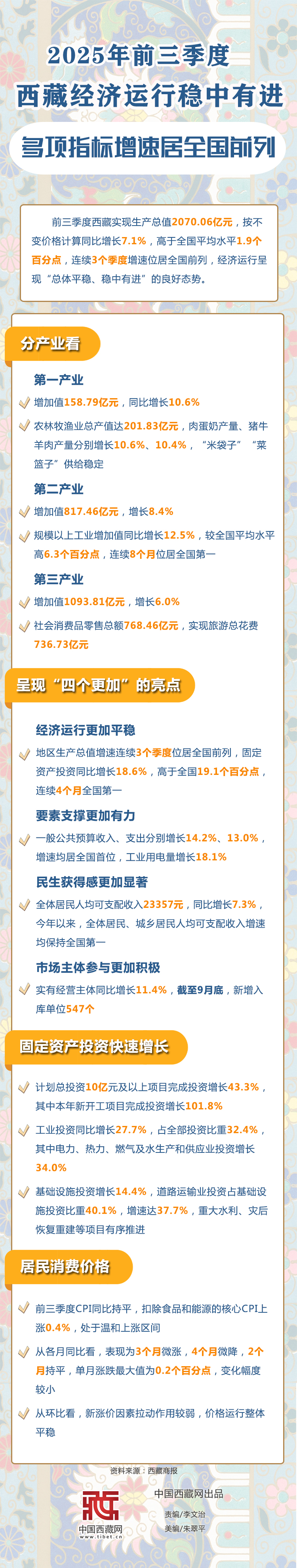 圖解|2025年前三季度西藏經(jīng)濟(jì)運(yùn)行穩(wěn)中有進(jìn) 多項(xiàng)指標(biāo)增速居全國(guó)前列