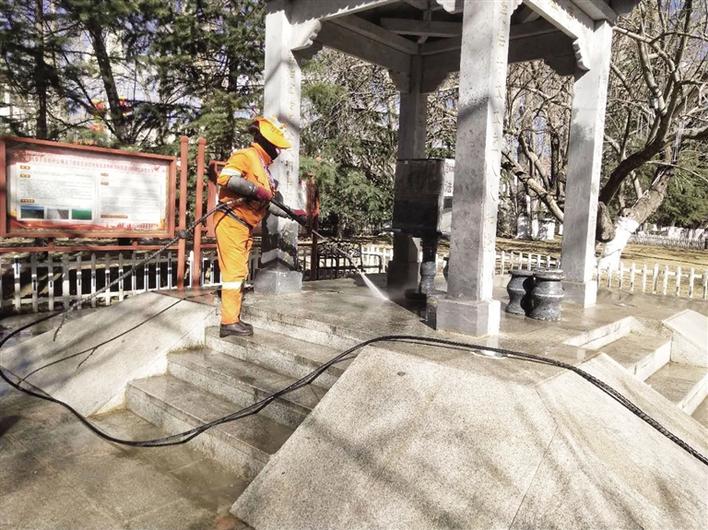 2月13日早上10點(diǎn),由西藏拉薩市城關(guān)區(qū)環(huán)衛(wèi)局局長(zhǎng)米瑪次仁牽頭,拉薩市城市建設(shè)投資經(jīng)營(yíng)有限公司相關(guān)領(lǐng)導(dǎo)配合,調(diào)動(dòng)50名保潔人員、4臺(tái)高壓沖洗車和1輛8噸灑水車,對(duì)宗角祿康公園內(nèi)原市民活動(dòng)區(qū)域進(jìn)行擦、沖、洗作業(yè)。