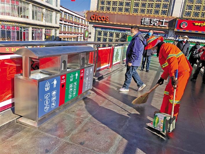 據(jù)城關區(qū)環(huán)衛(wèi)局局長米瑪次仁介紹,截至2019年底,城關區(qū)環(huán)衛(wèi)局與拉薩城投潔達環(huán)衛(wèi)保潔有限公司積極與部分企事業(yè)單位、學校及社區(qū)等47個區(qū)域對接,分別投放了四分類垃圾箱120套、240L垃圾桶658個、有害垃圾消納袋116個、腳踏兩分類垃圾桶321個。已建成并投入使用的積分兌換超市3家、垃圾分類投放亭4座、垃圾分類可回收物臨時存放點13個、有害垃圾臨時存放點2個;采購2臺可回收物運輸車輛、1臺有害垃圾運輸車輛、2臺餐廚垃圾運輸車輛和1臺大件垃圾運輸車輛。在春節(jié)和藏歷新年期間,抽調工作人員在娘熱南路、北京東路、江蘇南路、康昂南路、林廓東路、沖賽康天橋、熱木其天橋、八廓商城天橋、阜康天橋等人流量較多的區(qū)域放置了垃圾四分類果皮箱。