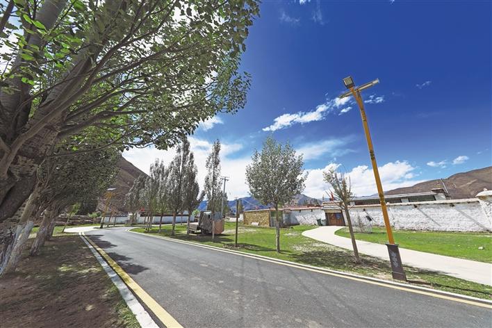 墨竹工卡縣政府前期投入500萬(wàn)元實(shí)施了一批“硬化、亮化、美化、綠化、標(biāo)準(zhǔn)化”的提升村容村貌、改善人居環(huán)境的民心工程。該縣從垃圾分類(lèi)入手,配齊了垃圾分類(lèi)設(shè)備,建立垃圾兌換點(diǎn);對(duì)主要道路鋪設(shè)瀝青,接戶(hù)道路進(jìn)行硬化,并配備亮化路燈;安裝綜治網(wǎng)格監(jiān)控,新建村小組活動(dòng)室、炒青稞房、磨面房、公共浴室、公共廁所,設(shè)置了農(nóng)家肥集中堆放區(qū),房前屋后栽種桃樹(shù)、蘋(píng)果樹(shù)、柳樹(shù)等10種經(jīng)濟(jì)綠化苗木1000余株,新增綠地150畝。