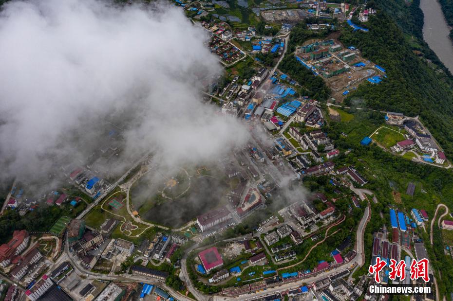 圖為云霧繚繞的墨脫縣城。 何蓬磊 攝
