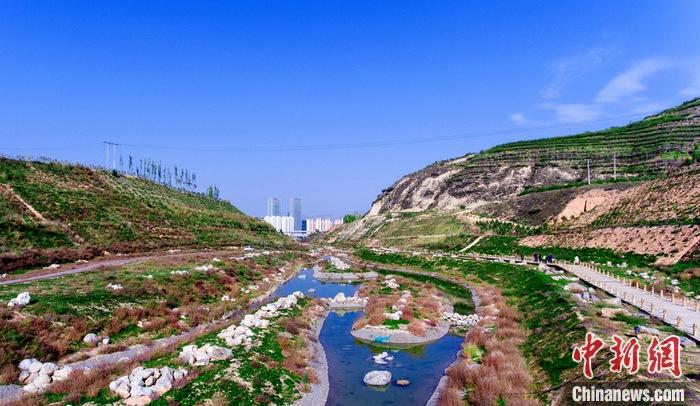 10月12日拍攝的生態(tài)修復項目治理后的火燒溝,河水清澈見底,溝壑險坡重披綠裝。 中新社記者 孫睿 攝