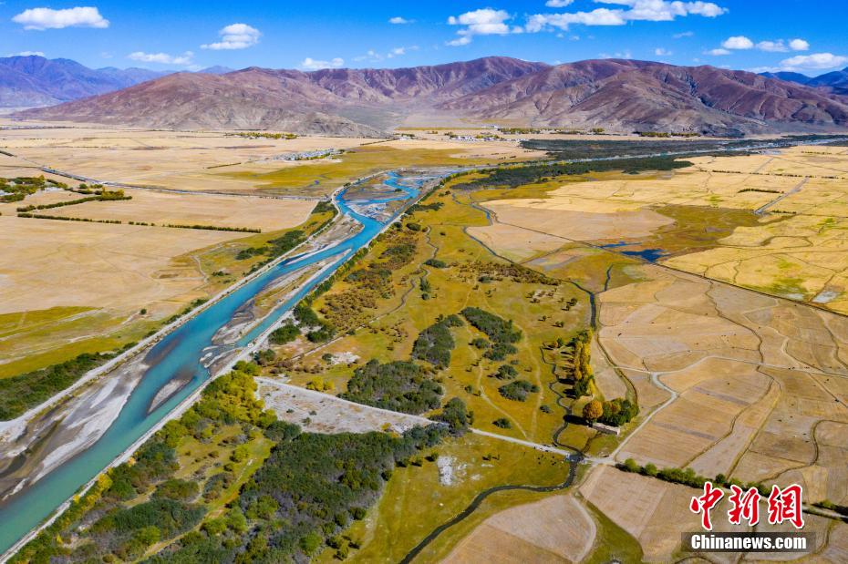 日喀則江孜縣境內(nèi)農(nóng)田、村居與金黃的樹林相映成趣。 何蓬磊 攝