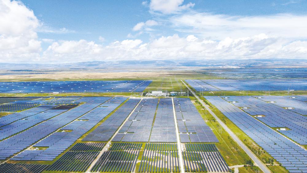 海南藏族自治州共和縣塔拉灘綠色產(chǎn)業(yè)發(fā)展園區(qū)拍攝的光伏電站(無(wú)人機(jī)照片)。 新華社記者 張龍 攝