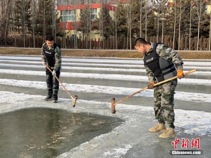資料圖為2020年12月28日,青海湖裸鯉救護(hù)中心工作人員在室外漁場(chǎng)破冰觀(guān)察裸鯉活動(dòng)情況。 中新社記者 李江寧 攝