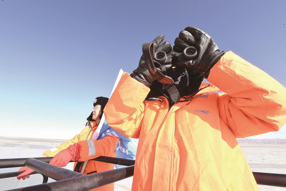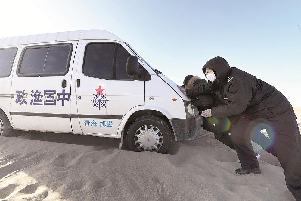 車(chē)緩緩駛向青海湖深處,即使穿得這么厚實(shí),但寒風(fēng)襲來(lái)時(shí),巡湖隊(duì)員們依舊被凍得直哆嗦。