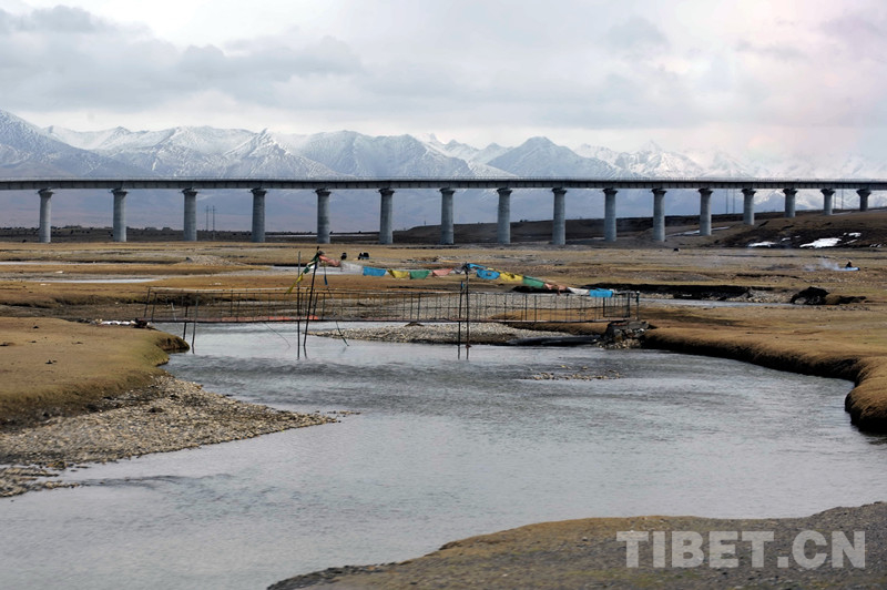 乘坐“天路”列車,通過藏北高原時(shí),我喜歡從車窗遠(yuǎn)望。因?yàn)檫@片鐵路依傍著青藏公路的廣袤高原草甸地區(qū),不僅能看見藏羚羊、藏原羚、藏野驢等野生動(dòng)物;還能看到清水河、楚瑪爾河、秀水河、長(zhǎng)江源等江河上的特大橋。這些蜿蜒而上的特大橋以橋代路,在很好地保護(hù)凍土和草原綠地的同時(shí),也為藏羚羊等野生動(dòng)物在這一帶棲息和遷徙提供了保障通道。