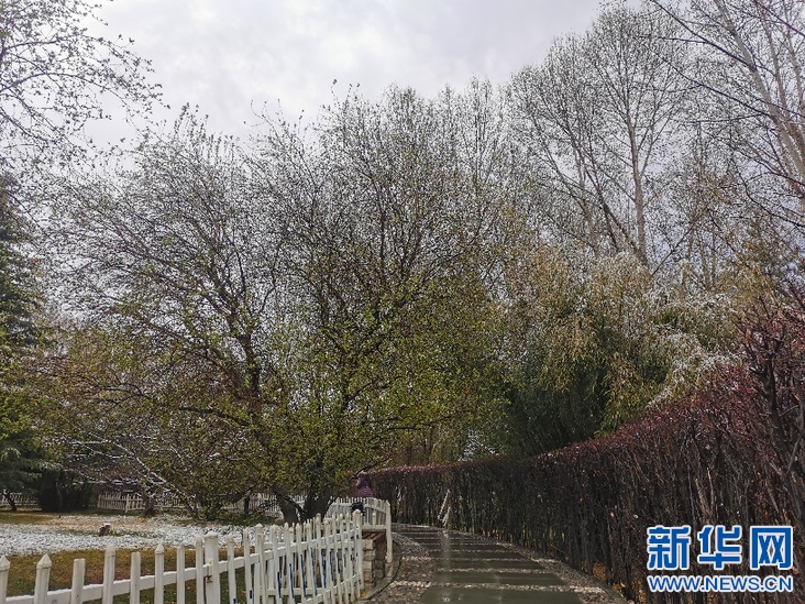 3月22日,雪后的龍王潭公園一景。新華網(wǎng) 張宸 攝
