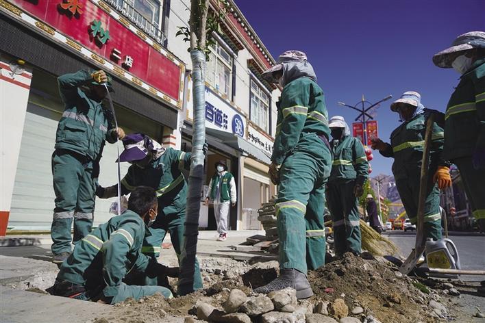 4月23日,記者在拉薩市朵森格路北段看到,道路兩旁正在栽種新樹木——大葉女貞。[詳細]