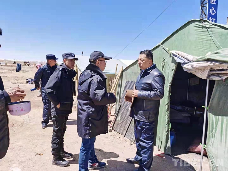 圖為麻多鄉(xiāng)黨委書記(右一)在源頭保護站調(diào)研生態(tài)狀況 攝影:才仁當(dāng)智