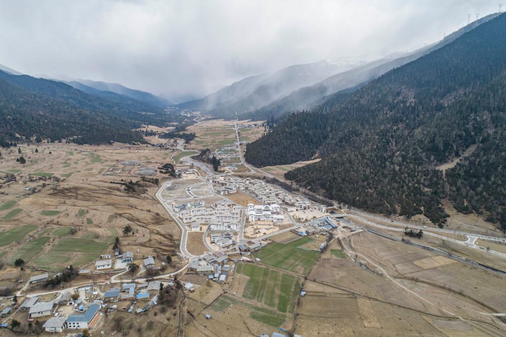這是川藏公路旁的魯朗國(guó)際旅游小鎮(zhèn)(4月2日攝,無(wú)人機(jī)照片)。新華社記者 孫非 攝