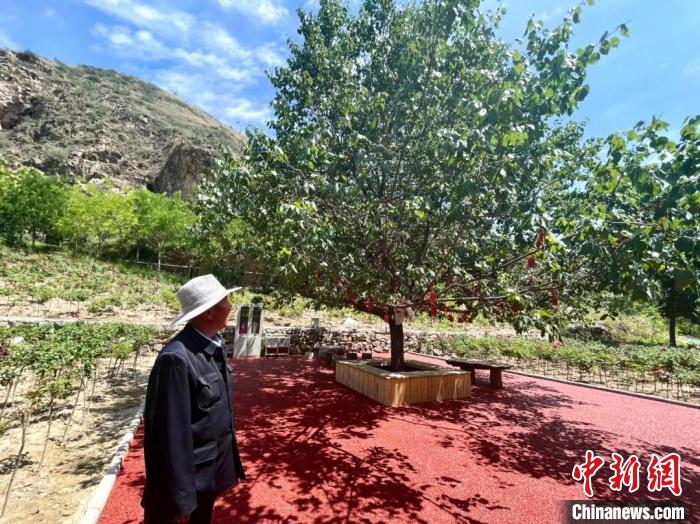 圖為馬進(jìn)才在禹王峽南種下的第一棵山杏樹(shù)?!∑罾C娟 攝