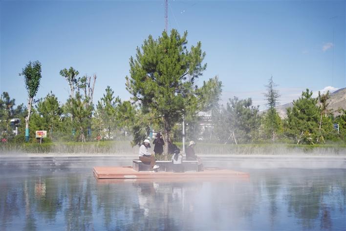 當(dāng)日,公園內(nèi)人來人往,很是熱鬧。人工湖水清澈見底,景觀橋蜿蜒伸向遠(yuǎn)方,遠(yuǎn)處的青山,與近處的綠水,勾勒出一幅絕美的風(fēng)景圖。老人在湖邊的座椅上休息,孩子跟著父母在公園內(nèi)“打卡”留念,眼前的情景處處彰顯著山南市民如今的幸福生活。