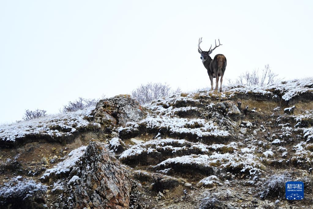 這是10月19日在三江源國家公園黃河源園區(qū)內(nèi)拍攝的一只白唇鹿。新華社記者 張龍 攝