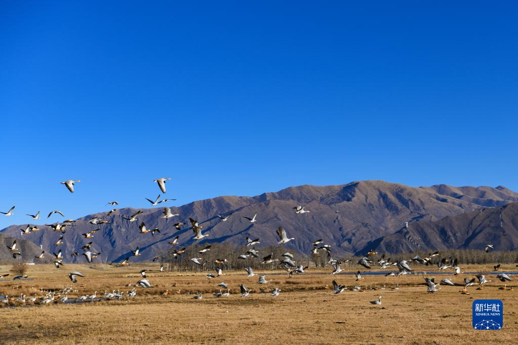 唐嘎鄉(xiāng)位于拉薩市達(dá)孜區(qū)東北部,這里每年冬季都會(huì)迎來黑頸鶴、斑頭雁、赤麻鴨等候鳥。這些在此越冬的“客人”和周邊的田園、濕地共同構(gòu)成高原冬季美景。
