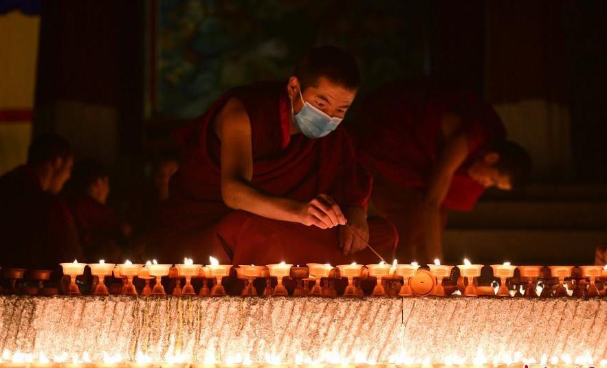 12月29日,拉薩色拉寺僧人點燃酥油燈。[詳細]