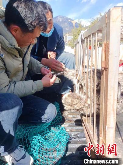 經(jīng)現(xiàn)場查看并向群眾了解,雪豹闖入開朗村一戶村民家院子試圖捕食家畜,村民發(fā)現(xiàn)后進(jìn)行驅(qū)趕,雪豹在逃離過程中被院子周邊網(wǎng)圍欄困住。考慮到雪豹性情兇猛、攻擊性強(qiáng)、周圍群眾較多的實(shí)際,為避免雪豹受驚嚇對群眾造成傷害,工作人員對雪豹進(jìn)行麻醉救護(hù),并運(yùn)送至林芝市野生動物收容救護(hù)站作全面身體檢查。