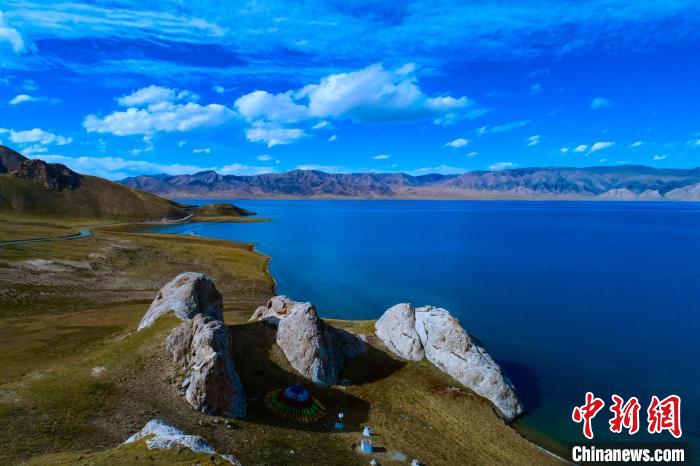圖為黃河源頭湖泊在藍天下如圖明鏡?!‖敹嗫h委宣傳部 供圖
