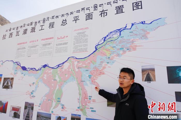 圖為貴德縣拉西瓦灌溉工程管理局副局長方軍介紹工程詳情?!●R銘言 攝