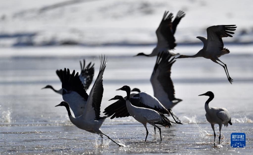 早春時(shí)節(jié),在西藏拉薩市林周縣境內(nèi)越冬的黑頸鶴開始為飛往藏北高原產(chǎn)蛋做準(zhǔn)備。黑頸鶴是國家一級(jí)保護(hù)動(dòng)物。據(jù)了解,近年來,西藏自治區(qū)多措并舉實(shí)施生態(tài)建設(shè)工程,黑頸鶴數(shù)量逐年遞增,目前西藏黑頸鶴數(shù)量超過萬只。