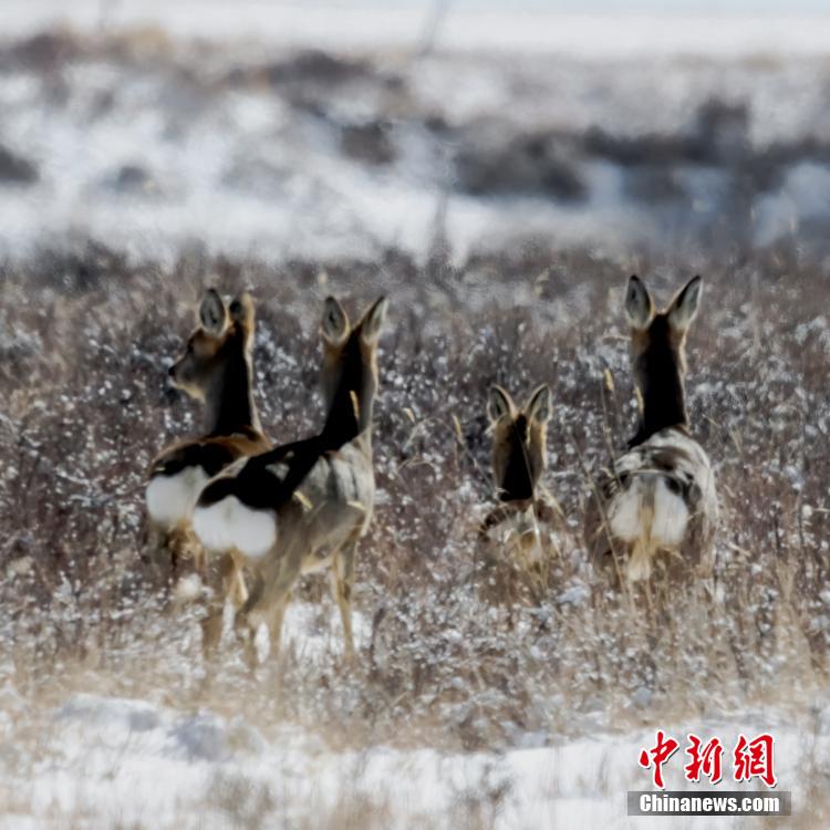 甘肅張掖:祁連山下“傻狍子”雪地上開啟“狂歡模式”