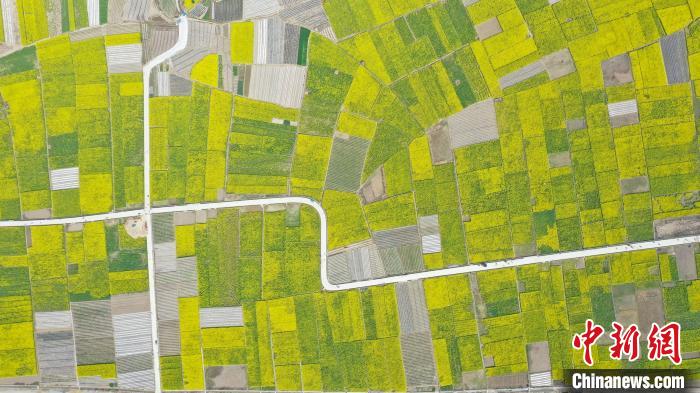 2022年3月下旬,甘肅隴南市武都區(qū)油菜花盛開(kāi),“花海”交織“路網(wǎng)”,景色誘人。 李董 攝