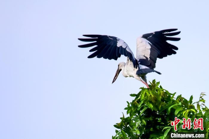 樹頂上的鉗嘴鸛。 周學(xué)峰 攝
