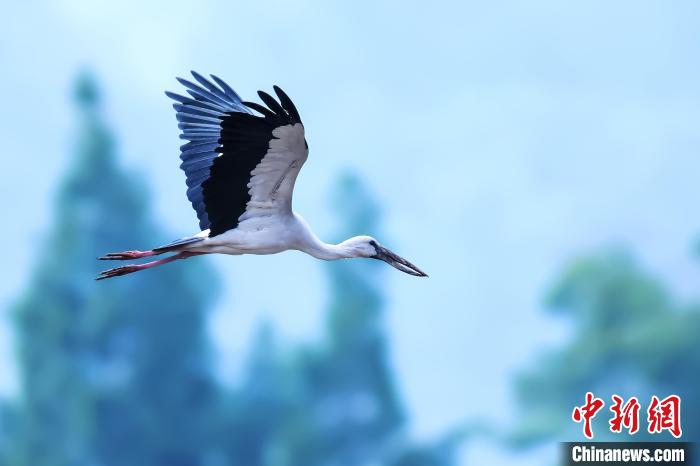 飛翔的鉗嘴鸛?!≈軐W(xué)峰 攝