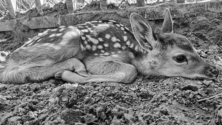 5月26日10時許,記者來到了南山公園,在飼養(yǎng)梅花鹿的地方見到了旦增群培。在他的帶領(lǐng)下,記者有幸近距離見到了剛出生一周的梅花鹿寶寶“日瓦”,它正懶洋洋地趟在一處樹蔭下休息。
