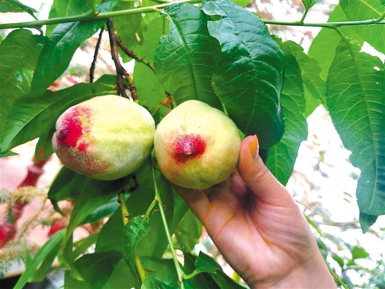 但記者一路行來,發(fā)現(xiàn)駛?cè)氚l(fā)展快車道的那曲不僅有樹,還有很多樹!不僅有常見的耐寒易活的松柏、楊柳,還有芭蕉、三角梅等等,只是還不夠大不夠多,不太容易發(fā)現(xiàn)而已。6月3日,本報(bào)記者甚至在海拔4750米的那曲市安多縣扎仁鎮(zhèn)的溫室大棚里采摘了剛剛成熟的桃子,這樣的奇跡簡直讓人難以置信!