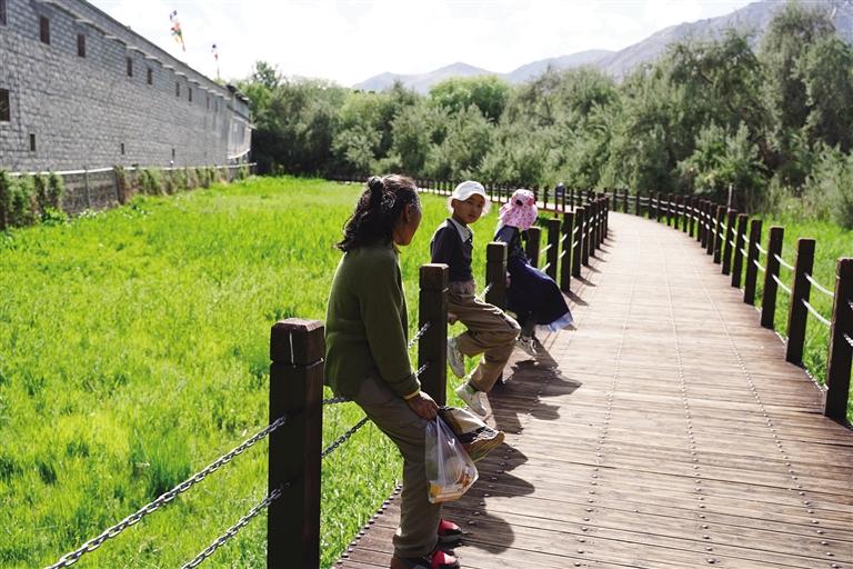 拉薩濱河公園是依托拉薩河3號(hào)閘建成的一處寬闊的濱水景觀和生態(tài)濕地長(zhǎng)廊,在這里不僅能看到水光瀲滟的拉薩河,還能漫步在健步道欣賞沿途風(fēng)景。順著步道往里走,道路兩旁花朵開得嬌艷,在綠葉的映襯下閃爍著耀眼的光彩。來到球場(chǎng)邊,目光隨著那群年輕的身影轉(zhuǎn)動(dòng),他們身姿矯健,在奔跑追逐中揮灑汗水,洋溢著青春的活力。
