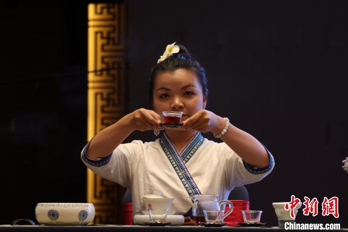 圖為國(guó)家高級(jí)茶藝師現(xiàn)場(chǎng)沖泡低氟普洱健康茶。 米瑪歐珠 攝
