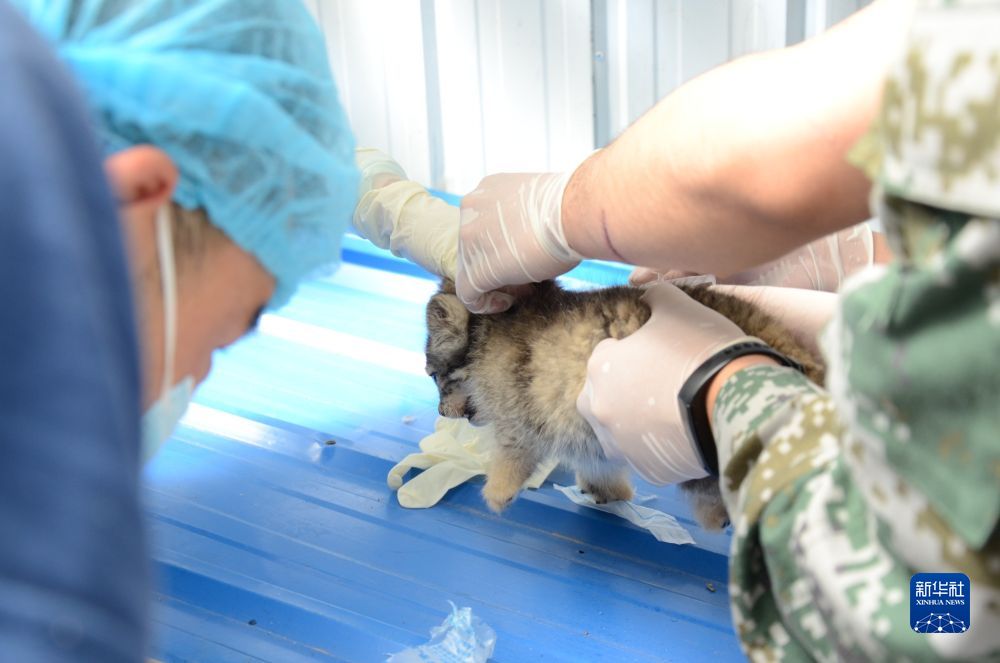 圖為2021年7月11日,工作人員在西寧野生動(dòng)物園里為2個(gè)月大的小兔猻打疫苗。(西寧野生動(dòng)物園供圖)