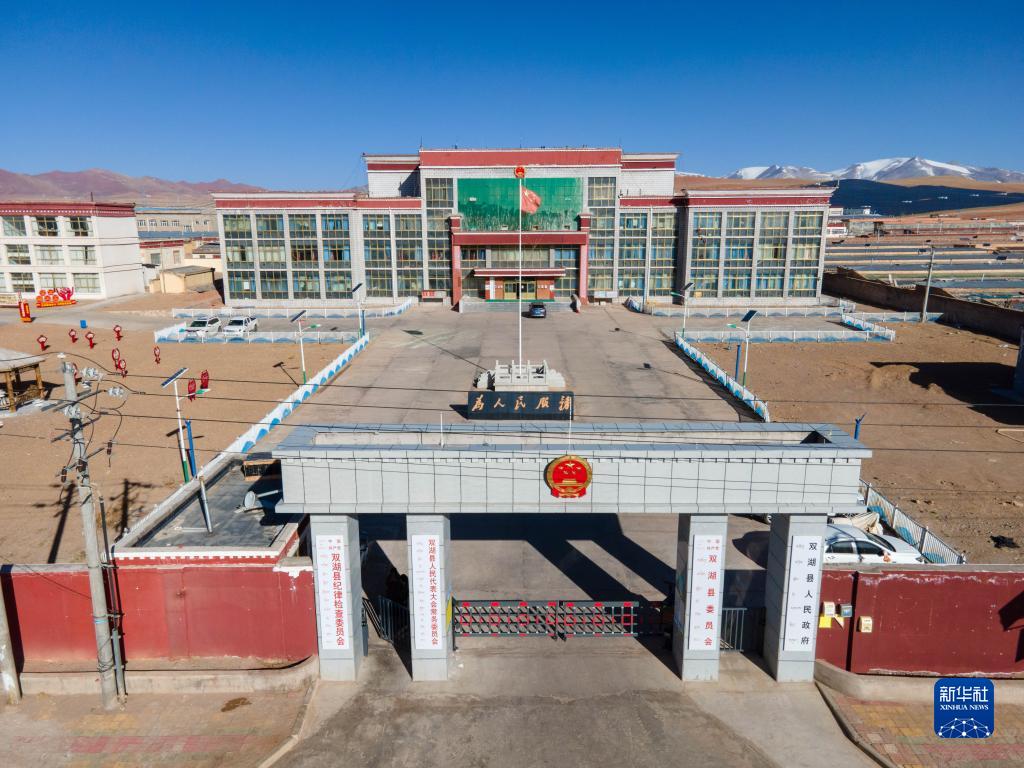 雙湖縣人民政府(3月27日攝,無人機照片)。新華社記者 周荻瀟 攝