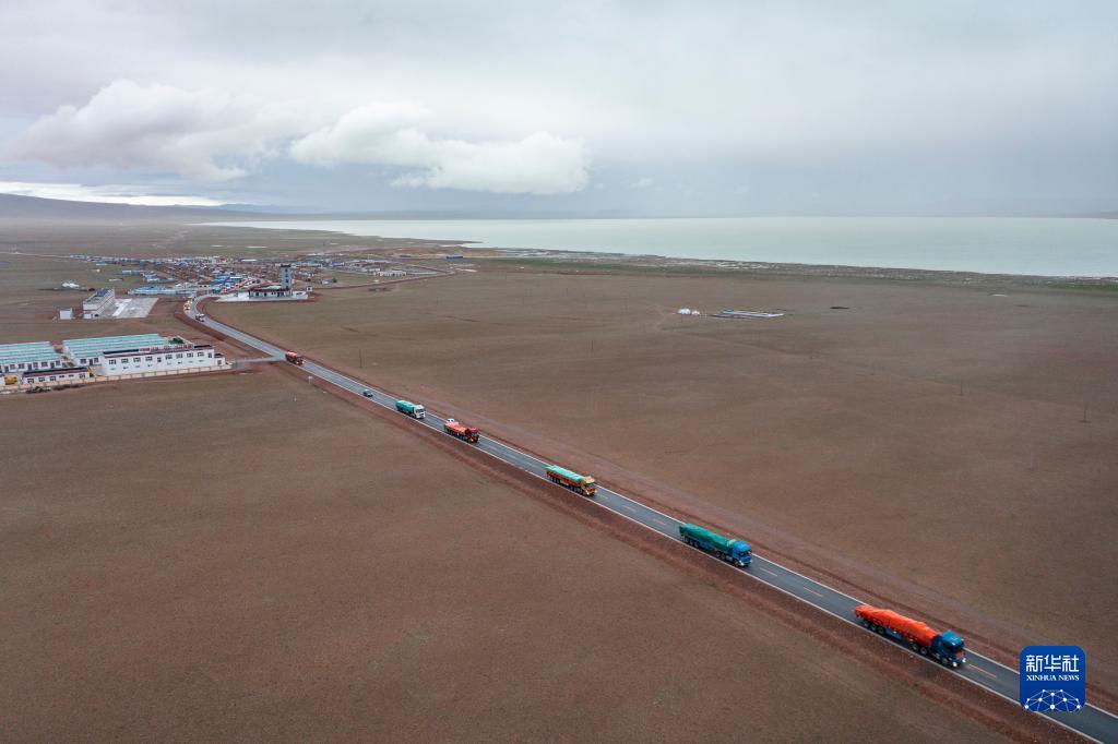 先期運送家具的貨運車隊從雙湖縣多瑪鄉(xiāng)出發(fā)(7月15日攝,無人機照片)。新華社記者 孫非 攝
