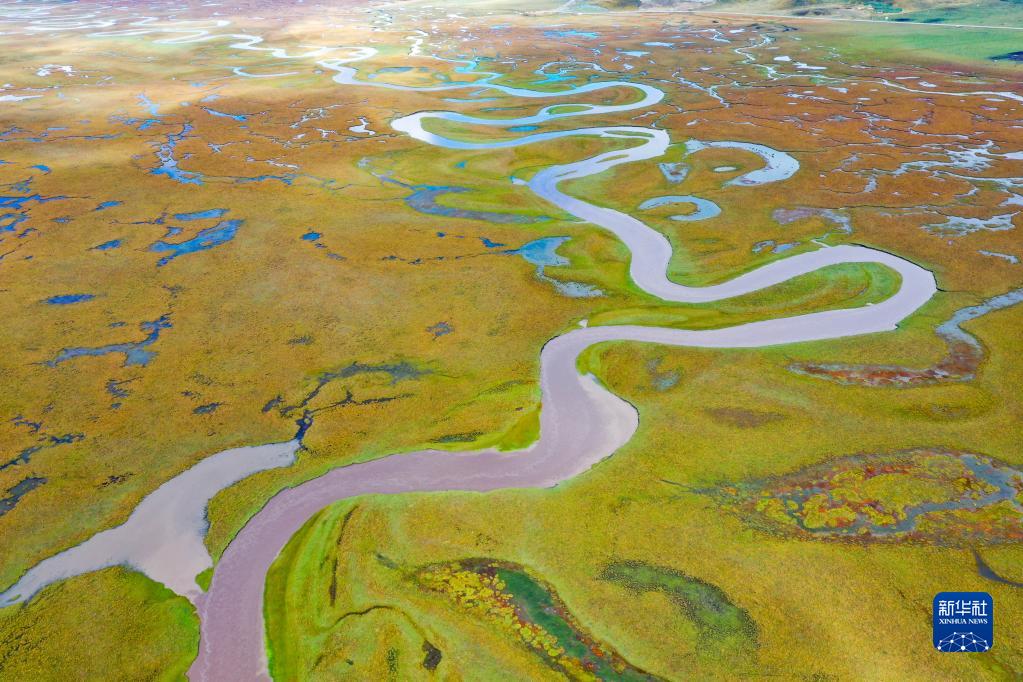 這是瑪曲縣阿萬(wàn)倉(cāng)濕地內(nèi)的河流和沼澤(9月17日攝,無(wú)人機(jī)照片)。新華社記者 郎兵兵 攝