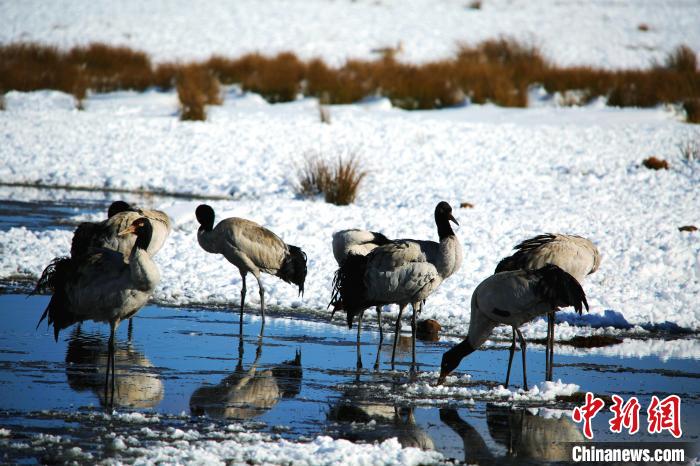 圖為在云南昭通大山包過(guò)冬的黑頸鶴。(資料圖) 吳太平 攝