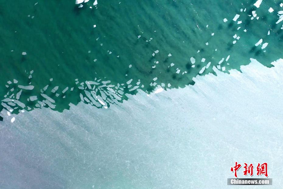 高原藍寶石青海湖 湖面封凍如破碎“玉帶”