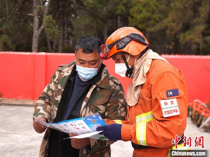 圖為森林消防員為民眾普及森防火知識(shí)。 巴宜區(qū)森林消防中隊(duì)供圖