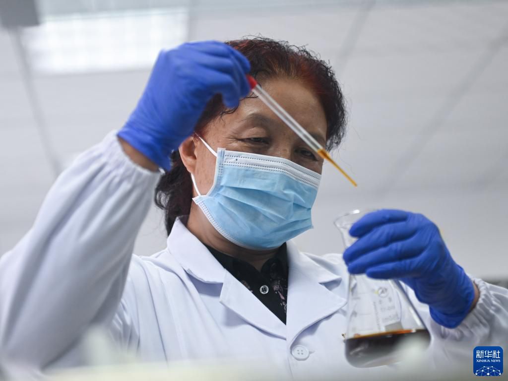 張錦梅在青海省西寧市林業(yè)科學研究所實驗室內配制藥劑(2022年9月14日攝)。新華社記者 張龍 攝