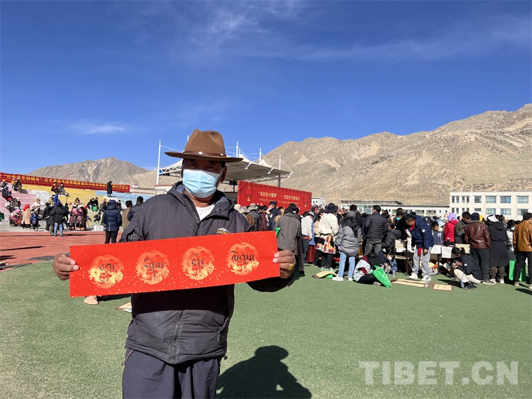 “我來(lái)自那曲安多縣,在森布日生活已有近一年,這里氣候暖,基礎(chǔ)設(shè)施齊全,真是趕上了好政策”66歲的多布杰說(shuō),他還主動(dòng)拿起書法家現(xiàn)場(chǎng)書寫并贈(zèng)送給他的吉祥對(duì)聯(lián)說(shuō):“今天真是很開(kāi)心,觀看了一場(chǎng)精彩的節(jié)目,還得到了書法家寫的‘扎西德勒’吉祥對(duì)聯(lián),這個(gè)我要貼在家里的門窗上”。