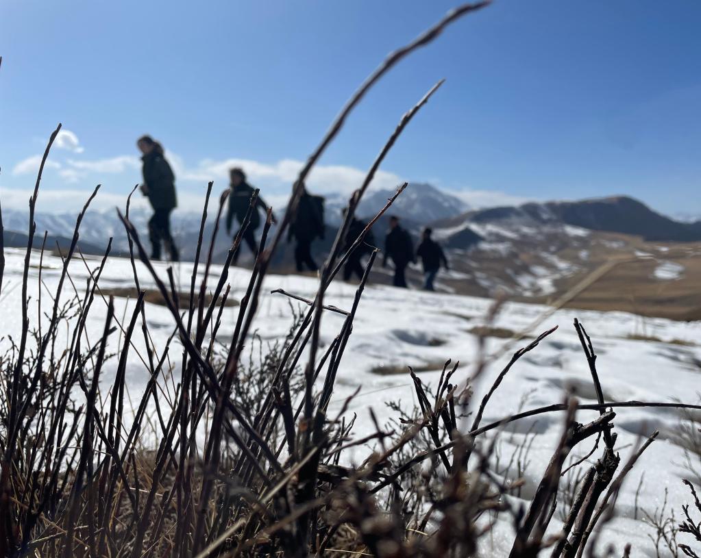 張麗萍(左一)和隊員們在祁連山國家公園進行巡護(2023年3月7日攝)。新華社記者 李琳海 攝
