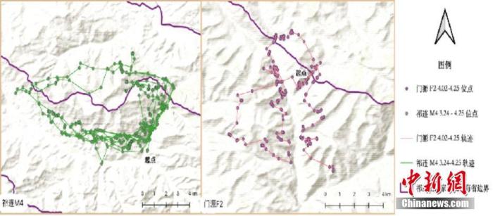資料圖為被追蹤雪豹活動(dòng)點(diǎn)位分布圖。 中新社發(fā) 祁連山國家公園青海省管理局 供圖